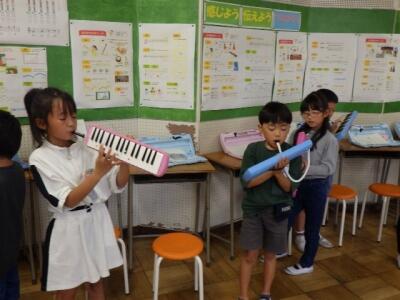 お気に入りの旋律を鍵盤ハーモニカで演奏します。