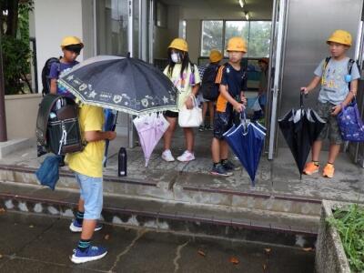 夏休みが終わり、アサガオの鉢が学校に戻ってきました。