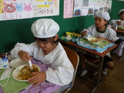 カレーの中に「ラッキーにんじん」が入っていますよ。