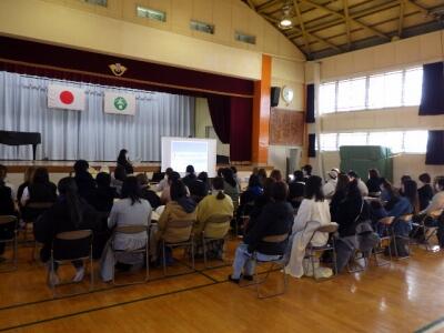 1年生の学校生活や準備するもの、健康な体づくり、登下校のしかた、PTA活動などについてご説明しました。