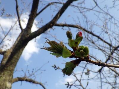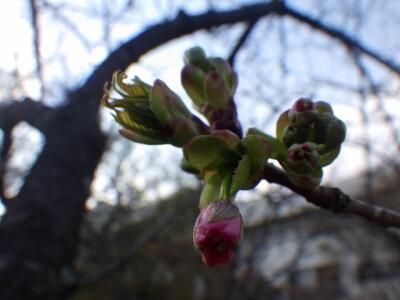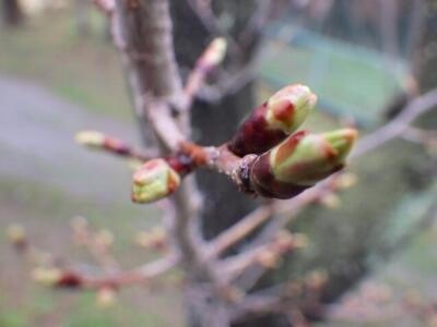 午後3時半。継続観察中の桜のつぼみはまだ開いていないのですが・・・。