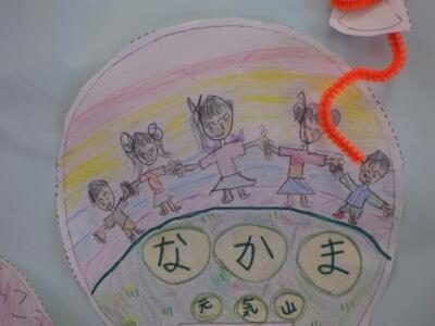 壁には夏休み中に募集したお祝いのメッセージが貼られています。