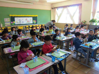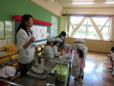 1年生、給食開始