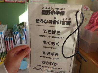 合言葉は「てきぱき」「もくもく」「すみずみ」「ぴかぴか」です。