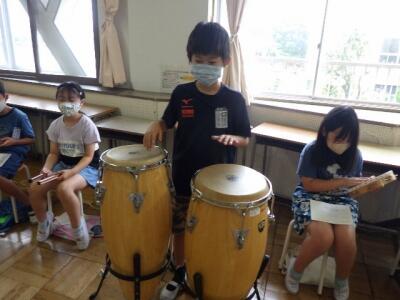 「いろんな木の実」という曲に、いろいろな打楽器を合わせます。