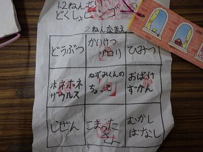 ビンゴ達成で、図書委員手作りのしおりがもらえます。