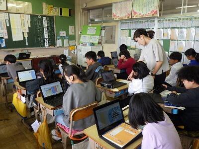 かつては模造紙に書いて発表することが多かったのですが、最近はクロームブックを活用する場面が増えてきました。