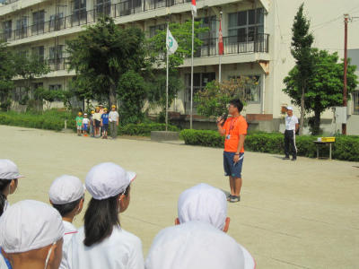 体育主任から今朝のがんばりについて。