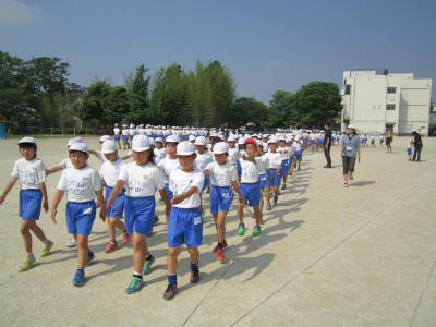 さわやかタイムの終わりの集合整列です。みんないい姿勢です。