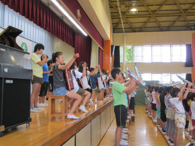 今年のトップを切って、6年生が音楽朝会で発表しました。曲は、「風になりたい」です。サンバのリズムに乗って、体育館全体を南の島に連れて行ってくれた気分になりました。