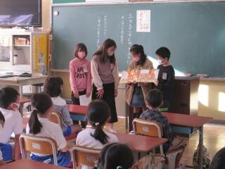 1年生の教室に行き、絵本を読み聞かせて紹介しました。