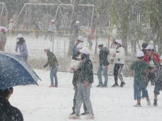 休み時間、子供たちは大喜びで校庭に出ていきました。
