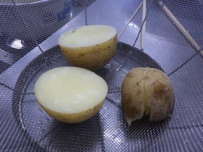 ジャガイモから湯気が出ています。