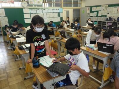 自分の考えを、それぞれのクロームブックに書き込みます。
