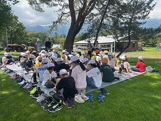 強い日差しの中、金次郎さんは87年間校庭に立ち続けています。