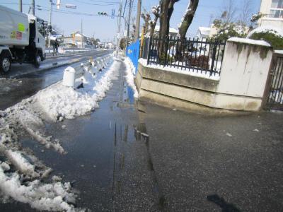 教職員が雪かきした昇降口から子供たちは、元気に遊びに行きました。