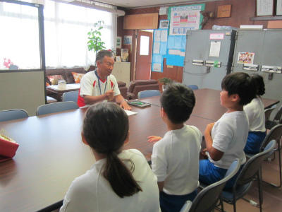 別のグループは、「豊野小の歴史」についてインタビューしていました。