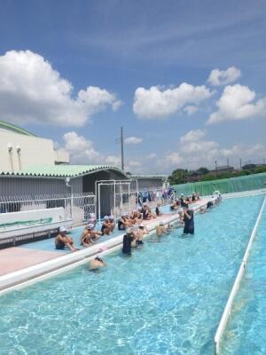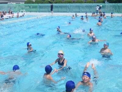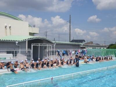 5年生が両サイドから勢いよく泳ぎ始めました。
