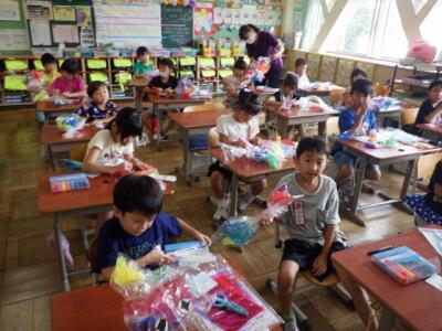 セロファンを使った工作「ひかりのくにのなかまたち」です。