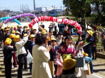 このアーチをくぐり終わると、豊野小ともお別れです。