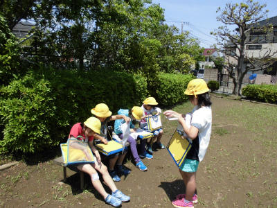 学校の周りを探検し、第3公園で休憩と地図の確認です。