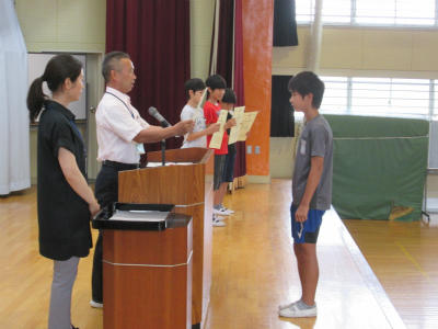 市内陸上大会の表彰を行いました。