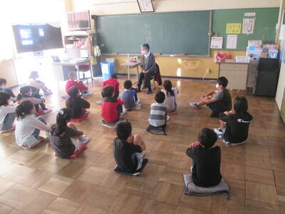 今朝も春日部おはなしの会のみなさんに読み聞かせをしていただきました。