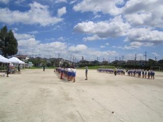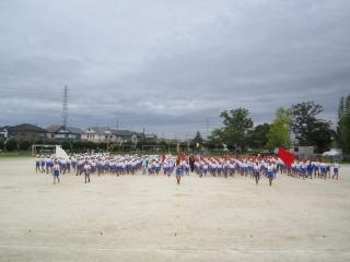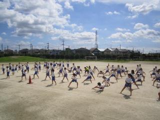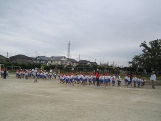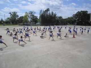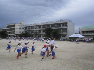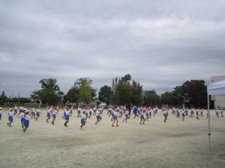 涼しい風の中、子供たちは、運動会練習のため校庭に集まってきました。