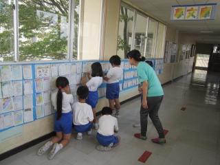 それぞれの運動会のめあてを書いて貼っている3年生。