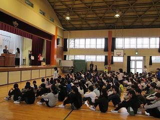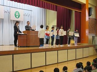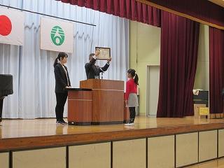 その場に立って一緒にお祝いされている子もいます。この後、教室で担任から受け取ります。