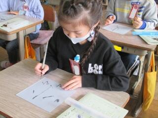 とめ、はね、はらいと、線の終わりに気をつけました。