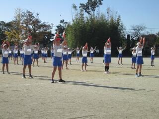 ポンポンをもって、本番に向けた練習の1・2年生。