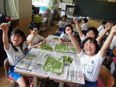 どの子もがんばってくれました。おかげで、予定より早く剥くことができました。