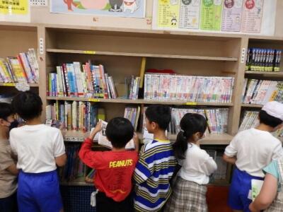 雨の影響で外遊びができなかったこともあり、たくさんの児童が図書室へやってきました。