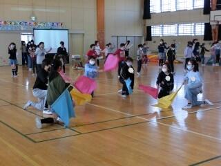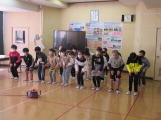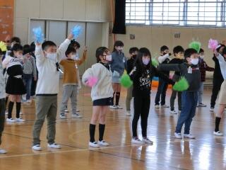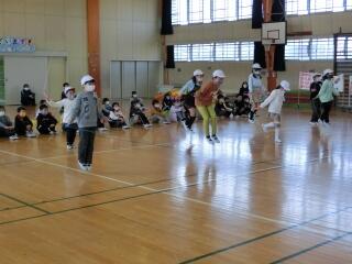 4年生は、曲に合わせて踊ったり、なわとびをしたり、