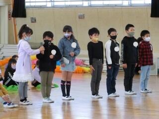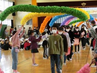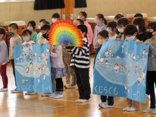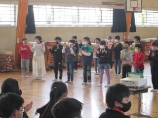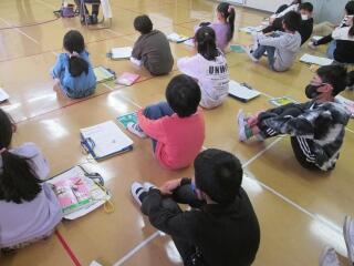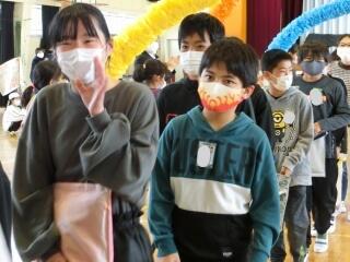 各学年の豊野っ子が体育館に入れ替わりで来て、