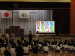 校長先生と図書委員会から、本の選び方や図書室の紹介、読書ビンゴなどの話がありました。