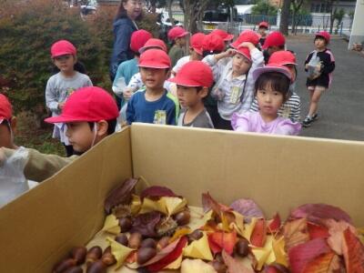リースづくりなどで使う落ち葉やどんぐりを集めています。