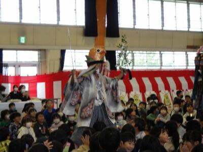 お囃子の笛と太鼓の音が体育館に響き渡ります。