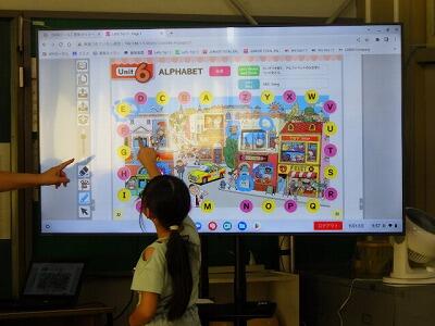 教科書の絵の中に隠れているアルファベットを探します。