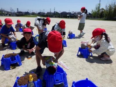 1年生がアサガオの種まきをしました。
