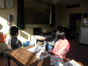 *放送委員の子どもは、英語活動のビデオを放映します。
