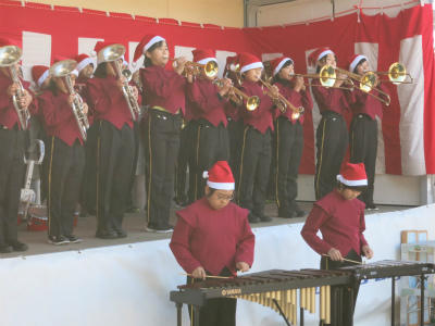 12月11日(日)に演奏クラブ・バトンクラブの子ども達は、豊野町で行われた「ふれあい広場」でマーチングの発表を行いました。地域の方には、先日の豊野地区体育祭に次いで2回目となりますが、たくさんの方に、演奏を見ていただき大きな声援もいただきました。