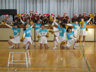 今日の昼休みに、演奏クラブ・バトンクラブによるクリスマスコンサートが体育館で行われました。