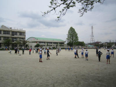 今日の業前運動「さわやかタイム」に、初めて1年生が参加しました。お兄さんお姉さんの運動をよく見て、同じように運動しました。退場行進も手を振って元気に行進できました。