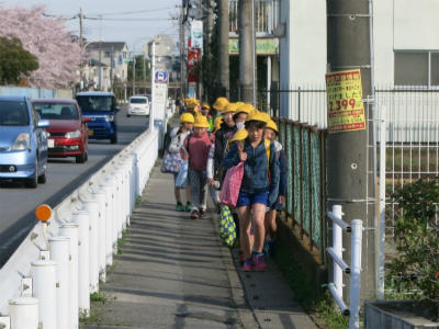 みんなしっかり1列で登校しています。