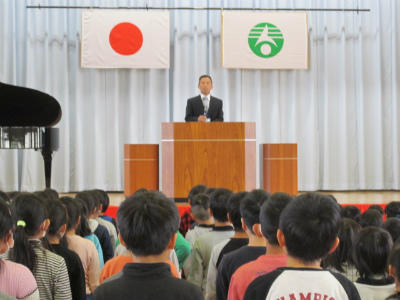 始業式では、校長先生から「笑顔で元気なあいさつ 笑顔で元気な学び」をつくる学校のためがんばっていきましょうとお話がありました。