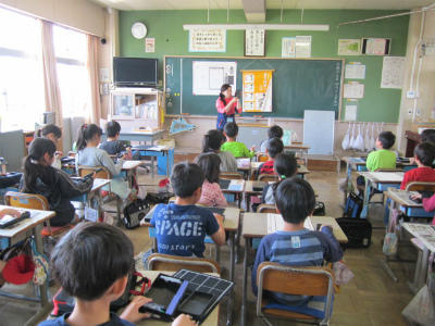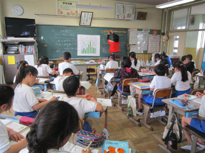 3年生、初めての書写(習字)です。道具の使い方を学んでいます。