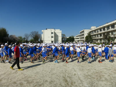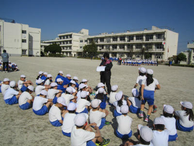 行進は、校長先生が指導してくれました。腕を大きく振り行進します。