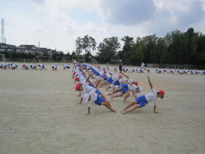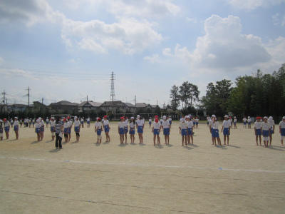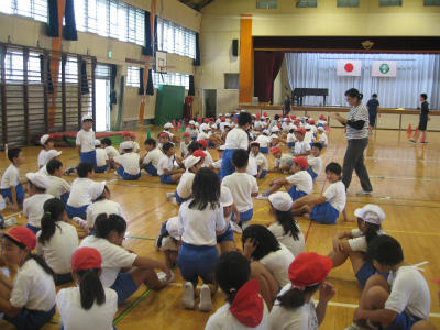 天気予報通りに雨が降り、開会式の練習は、体育館で行いました。